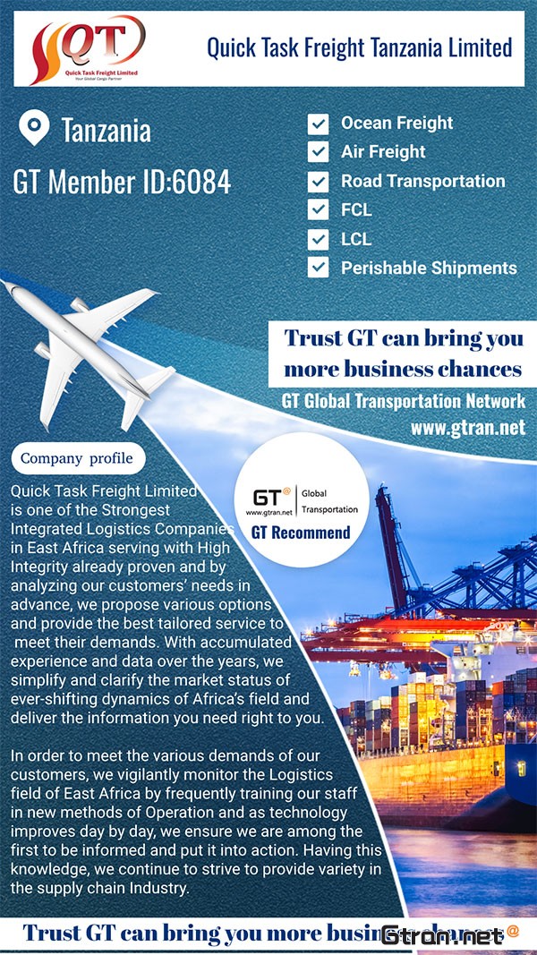 We are here to announce that Quick Task Freight Tanzania Limited joins as a GT VIP member in Tanzania.