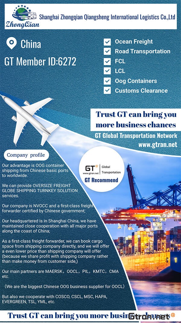 GT NEW VIP Member: Shanghai Zhongqian Qiangsheng International Logistics Co.,Ltd, China