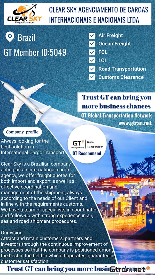 Welcome CLEAR SKY AGENCIAMENTO DE CARGAS INTERNACIONAIS E NACIONAIS LTDA Renew GT VIP Membership for