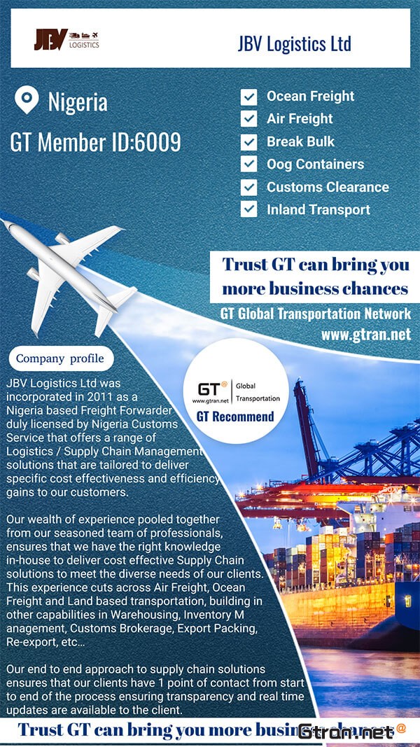 GT NEW VIP Member: JBV LOGISTICS LTD. Nigeria