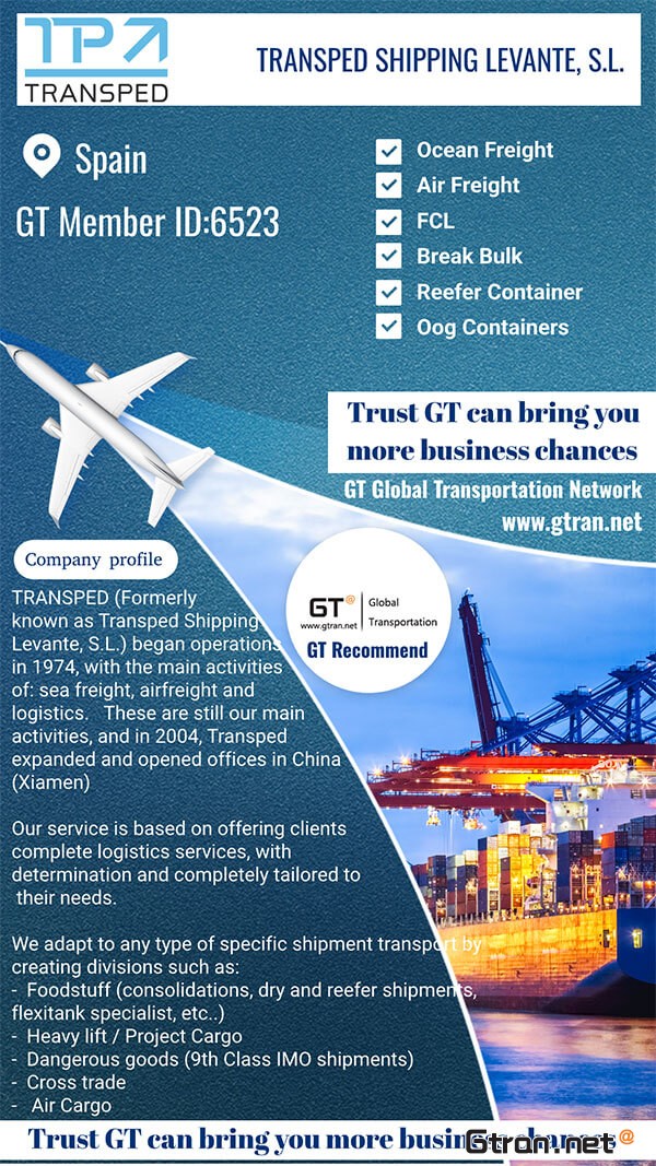 GT NEW VIP Member: TRANSPED SHIPPING LEVANTE S.L., Spain.