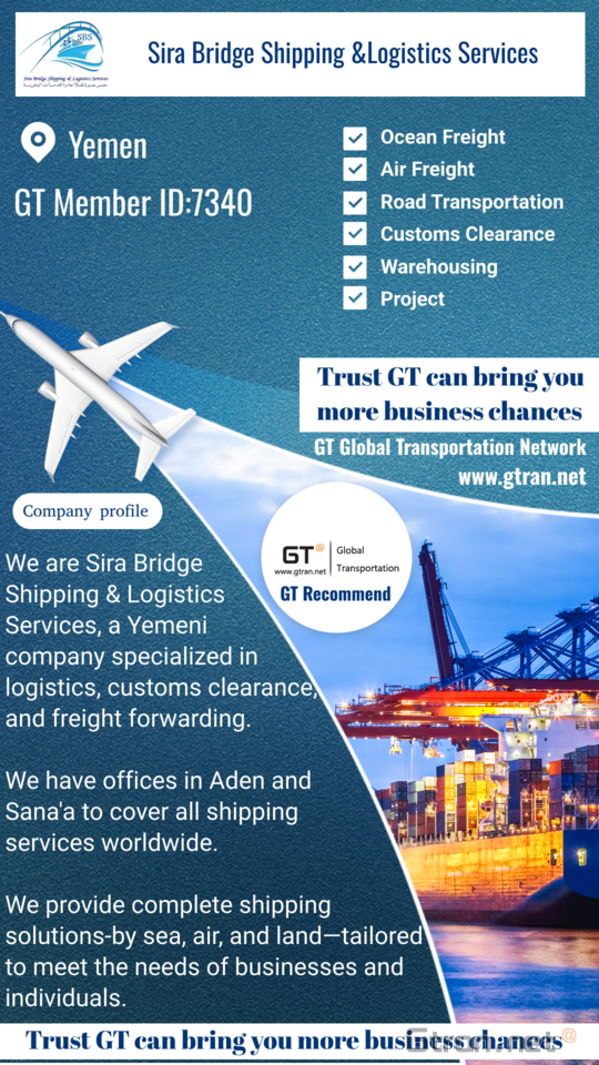 We are here to announce that Sira Bridge Shipping &Logistics Services joins as a GT VIP member in Yemen.