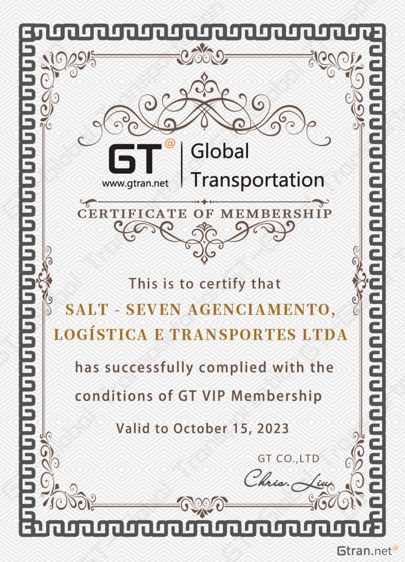 We here to announce that SALT - SEVEN AGENCIAMENTO, LOGíSTICA E TRANSPORTES LTDA join as GT Brazil VIP member .