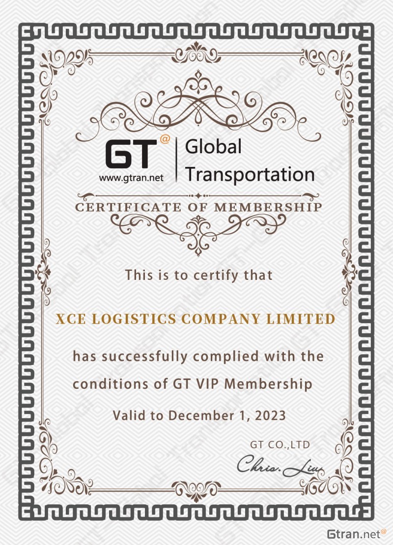 We here to announce that XCE LOGISTICS COMPANY LIMITED join as GT Thailand VIP member.