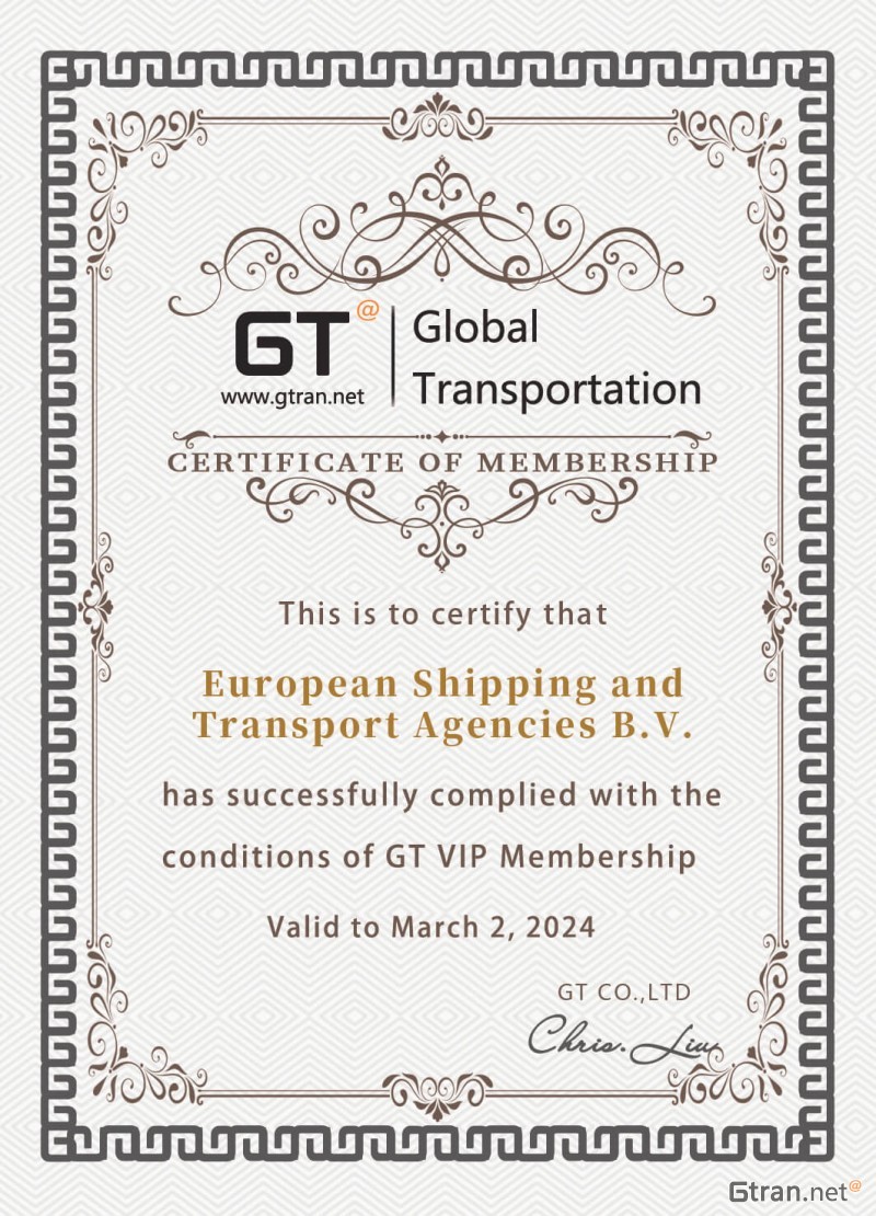We here to announce that European Shipping and Transport Agencies B.V. join as GT Netherlands VIP member.