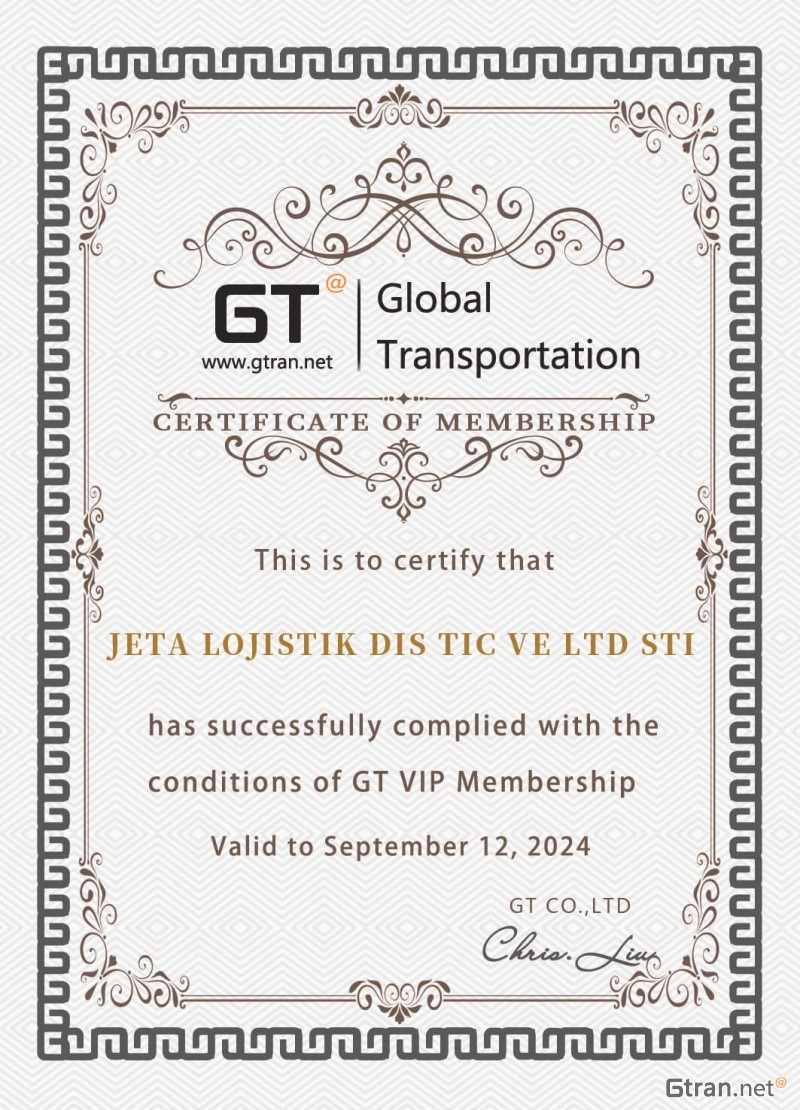 We here to announce that JETA LOJISTIK DIS TIC VE LTD STI join as GT Turkiye VIP member.